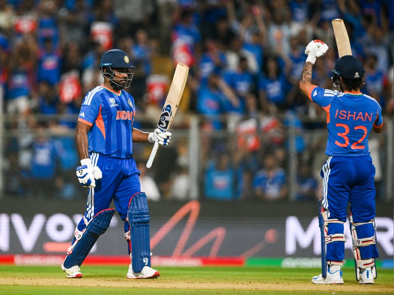 सेमीफाइनल मुकाबले में भारतीय टीम की शुरुआत अच्छी नहीं रही। अभिषेक शर्मा सिर्फ 9 रन बनाकर आउट हुए। हालांकि, इसके बाद ईशान किशन और संजू सैमसन ने मोर्चा संभाला और ताबड़तोड़ अंदाज में बल्लेबाजी करते हुए दूसरे विकेट के लिए 45 गेंदों में 97 रन जोड़े। ईशान 18 गेदों में 39 रन बनाकर आउट हुए। वहीं, संजू ने बेहतरीन बल्लेबाजी करते हुए महज 42 गेदों में 89 रनों की धमाकेदार पारी खेली। शिवम दुबे ने भी अच्छी लय में दिखाई दिए और उन्होंने 25 गेंदों का सामना करते हुए 43 रन बनाए। अंत के ओवरों में तिलक वर्मा ने 7 गेंदों में 21 रन बनाए, तो हार्दिक पांड्या ने 3 चौके और 2 छक्कों की मदद से 27 रन बनाए। गेंदबाजी में इंग्लैंड की तरफ से विल जैक्स और आदिल रशीद ने दो-दो विकेट चटकाए।
